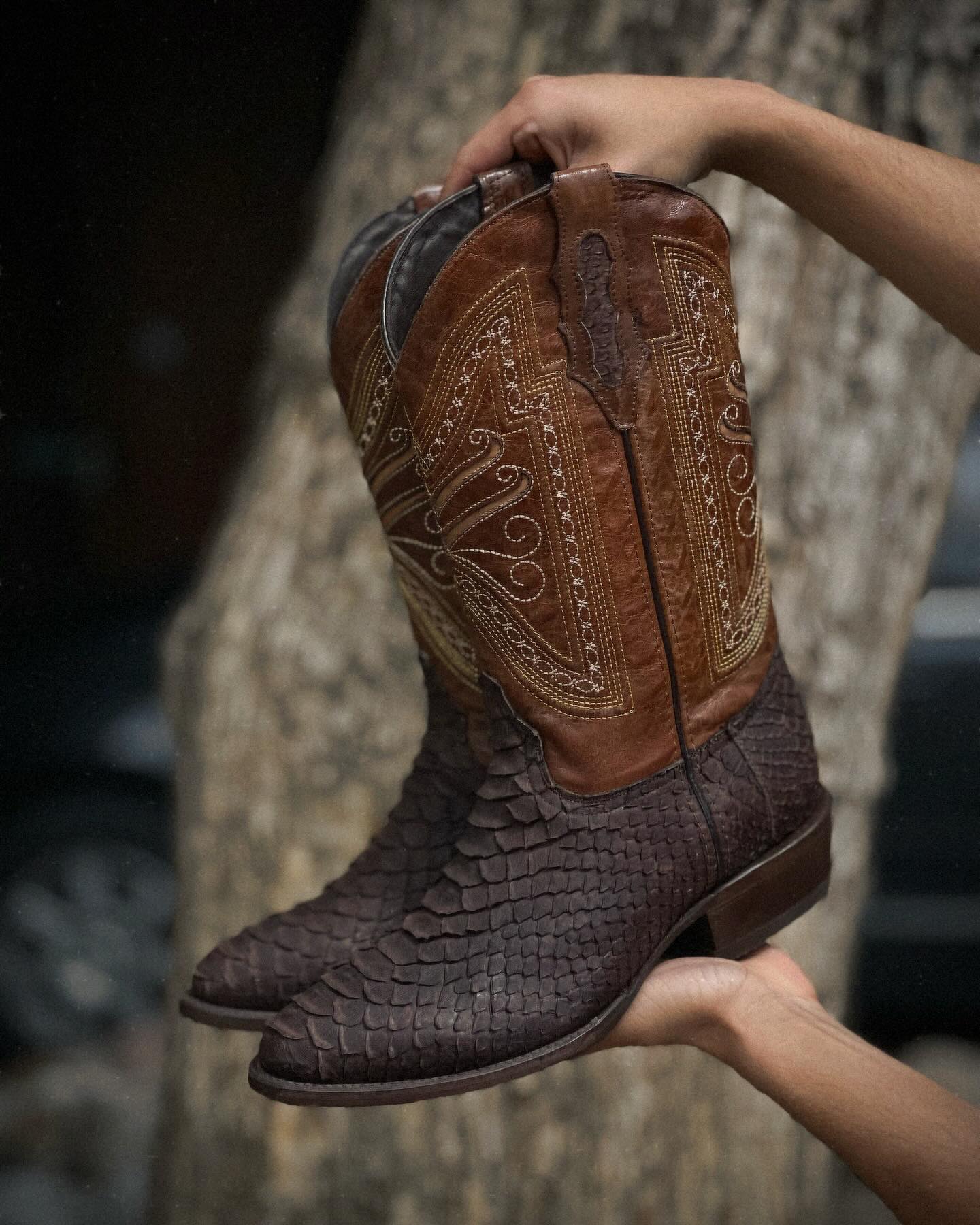 Nuestras botas vaqueras están hechas a mano con el mismo estándar que nuestros legendarios sombreros occidentales, utilizando técnicas ancestrales y detalles de estilo tradicional.