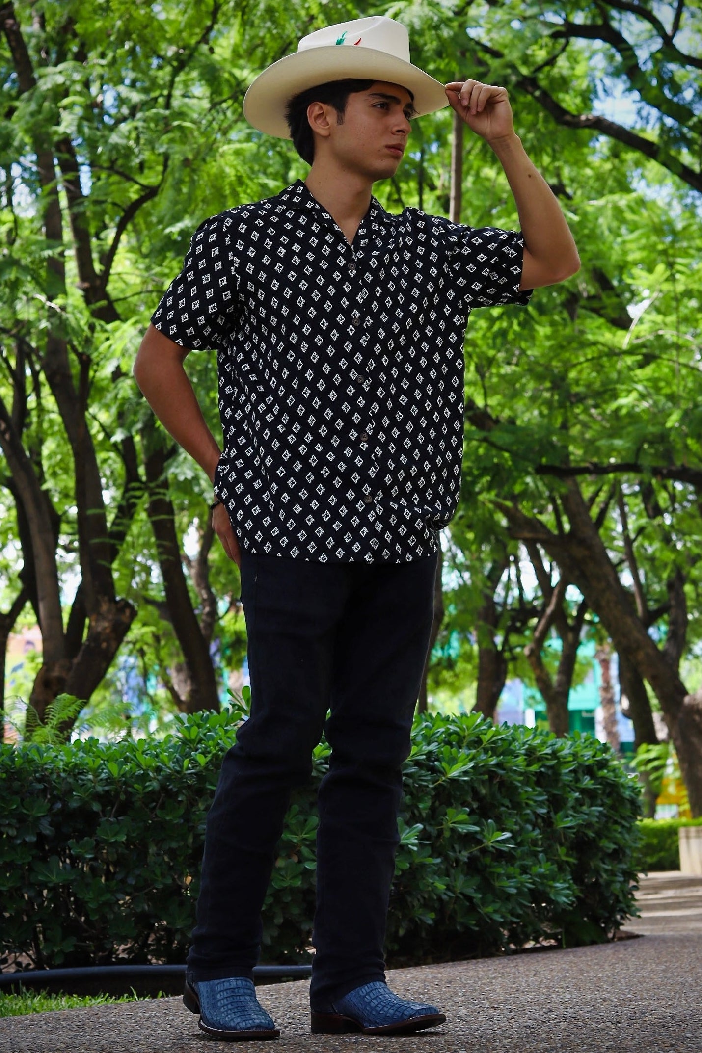 Nuestras botas vaqueras están hechas a mano con el mismo estándar que nuestros legendarios sombreros occidentales, utilizando técnicas ancestrales y detalles de estilo tradicional.